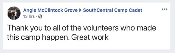 For many youngsters, Camp Cadet is their first encounter with a police officer. Instead of fear and hostility, there is awe and eagerness to learn. Instead of prison bars, there are open doors. Instead of being caught in an illegal act, the young people at Camp Cadet have volunteered to be here. Participants in Camp Cadet learn to respect the law, and most importantly, to respect themselves.