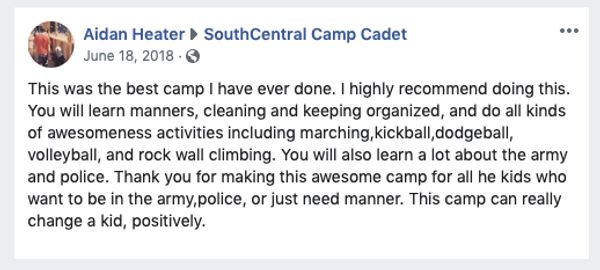 The Camp Cadet youth are challenged by classroom instruction and physical activities, such as marching and running. Bunks are required to be spotless each morning and questions to counselors are preceded by "Sir" or "Ma'am."